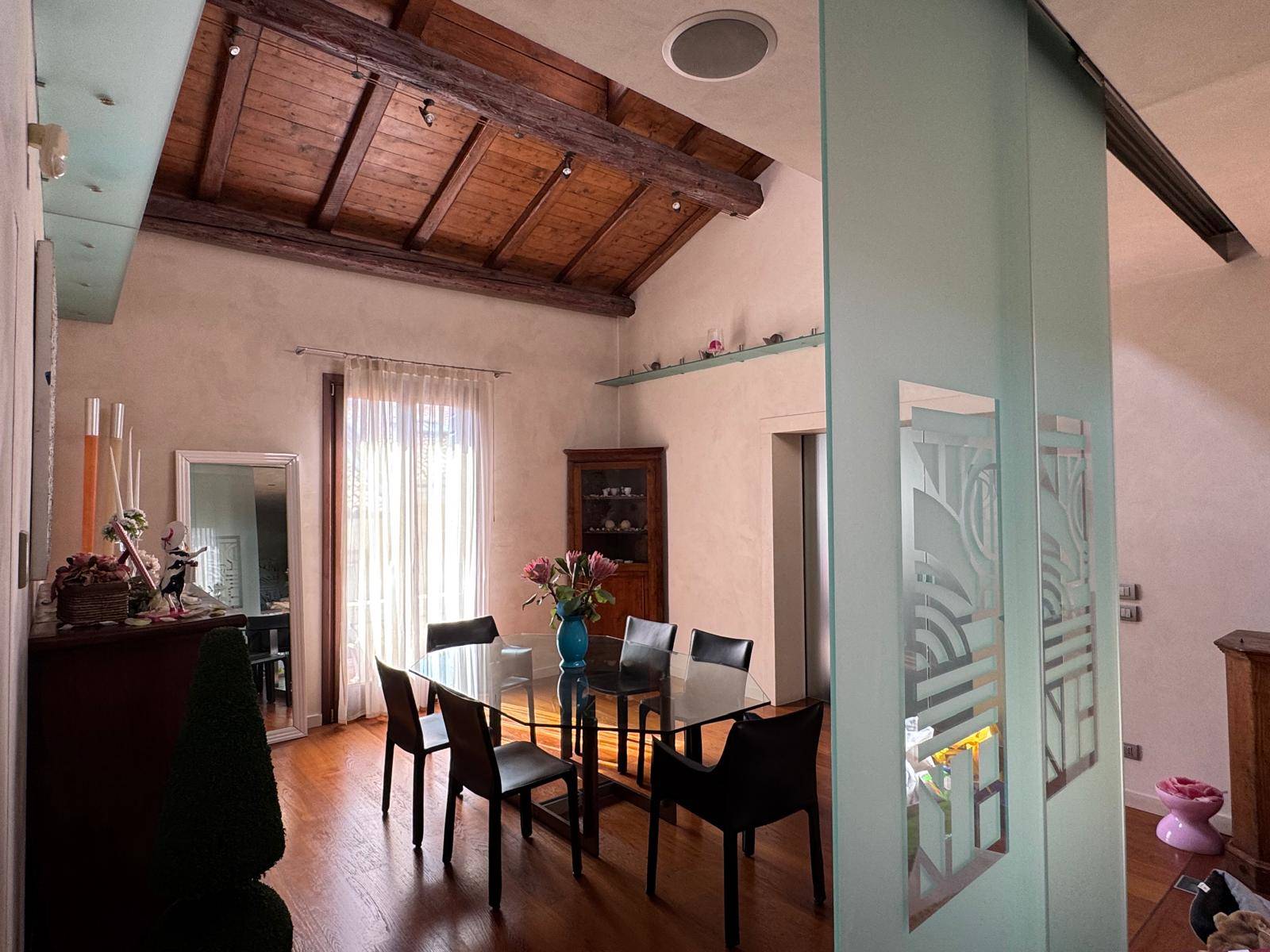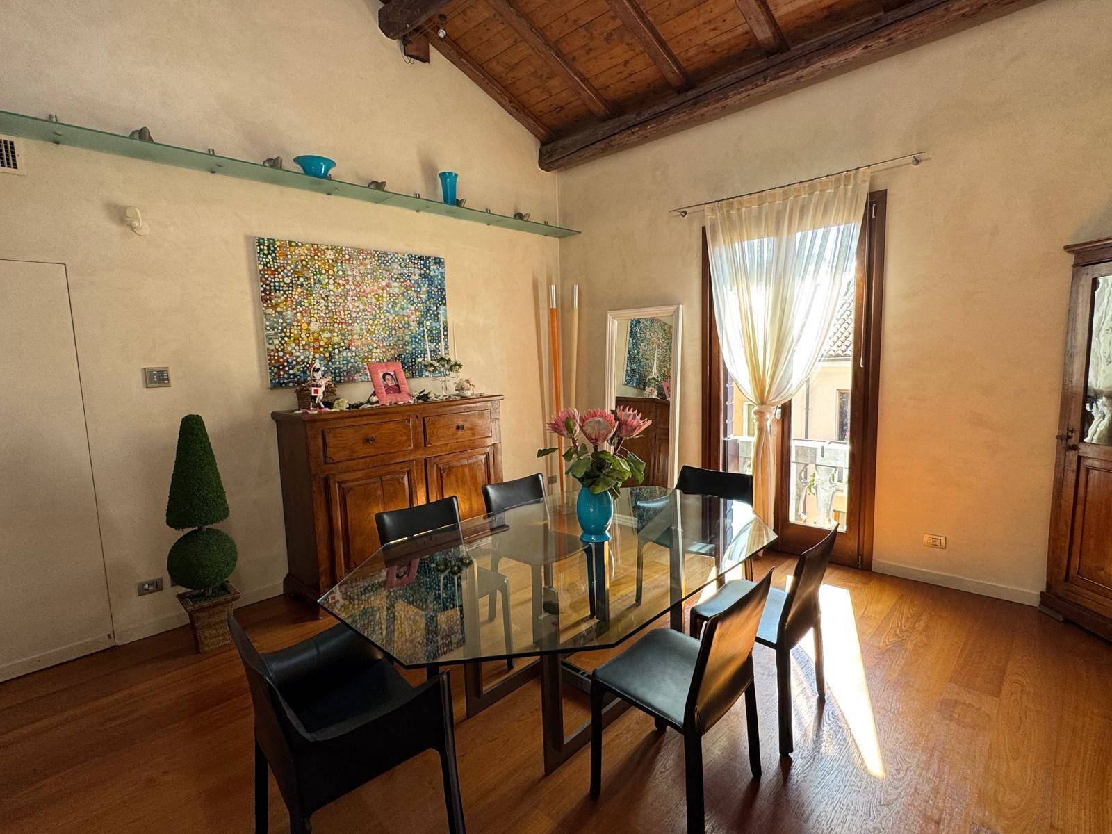 VIA SAN PROSDOCIMO in palazzetto storico splendido attico arredato mq. 250 con due comodi posti auto. Canone concordato € 2.200 + spese condominio € 200. Classe: D EP: 91,28